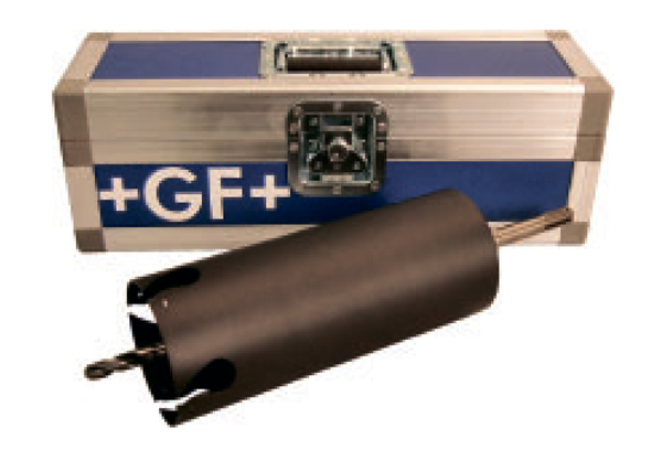 По окончании сварочного процесса, на стадии подготовки врезки в основной трубопровод, крайне желательно опрессовать конструкцию со стороны выходного патрубка, с целью проверки герметичности соединения. При положительном результате, если утечка не обнаружена, можно приступать к непосредственной врезке. На этом этапе помогут корончатые сверла, которые специально имеются в комплекте предлагаемого оборудования от Georg Fischer.