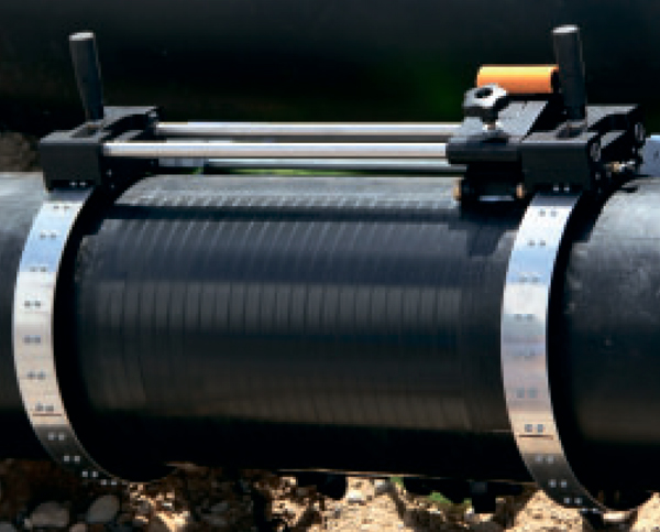 На зачищенном фрагменте трубы неизбежно удаляется и разметка на ее поверхности, однако с монтажом седелочного отвода не возникает дополнительных сложностей. Он легко направляется по оси и точно располагается в нужном месте трубы, благодаря меткам, присутствующим на нем и на монтажной раме.