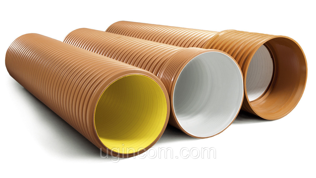 Производство и внутреннего, и наружного слоя идет одновременно с использованием способа двухшнековой экструзии. Структура обоих слоев – монолит. Дополнительная жесткость трубам обеспечивается воздушными зазорами между слоями. Абразивные материалы не оставляют на поверхности царапины и трещины. Необходимость контроля в процессе эксплуатации, замены или ремонта сводится к минимуму.